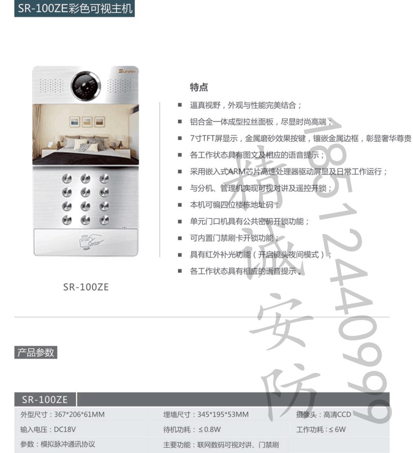 SR-100樓宇可視對(duì)講系統(tǒng)——安防商盟網(wǎng)安防產(chǎn)品