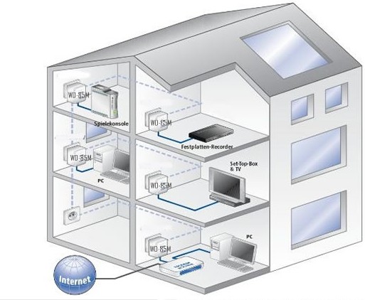 應(yīng)用場(chǎng)合:家庭內(nèi)部電力線布線簡(jiǎn)單,電力貓的兩端可連接的電力線在一根電力線上